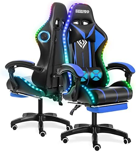 Amazon Com Geepro Gaming Chair Massage With Speakers Bluetooth Ergonomic Computer Chair With Footrest Led Rgb Lights High Back Music Video Game Chair With Lumbar Support Blue And Black Home Kitchen